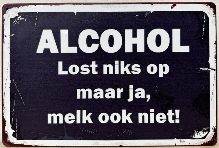 Metalen wandbord - Alcohol Lost niks op